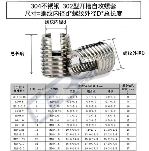 302開槽型自攻螺套