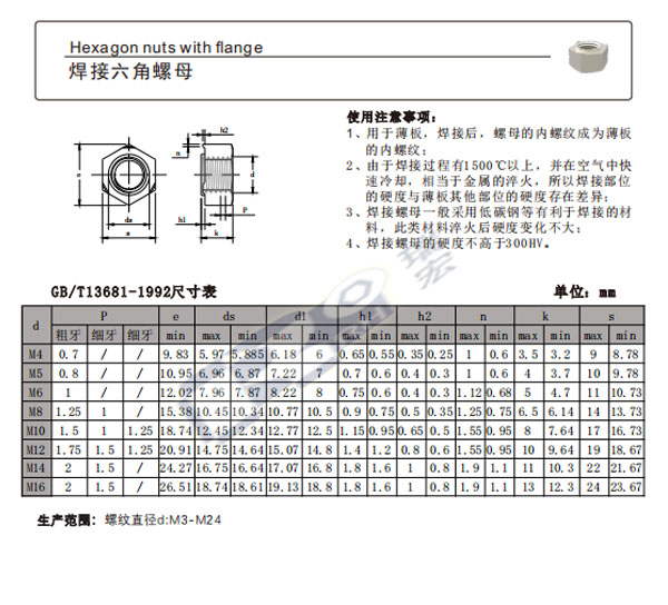 焊接六角螺母